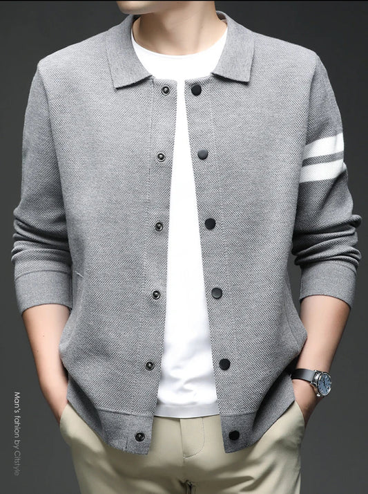 TIE NECK CONTRAST TRIM WOOL BLEND CARDIGAN