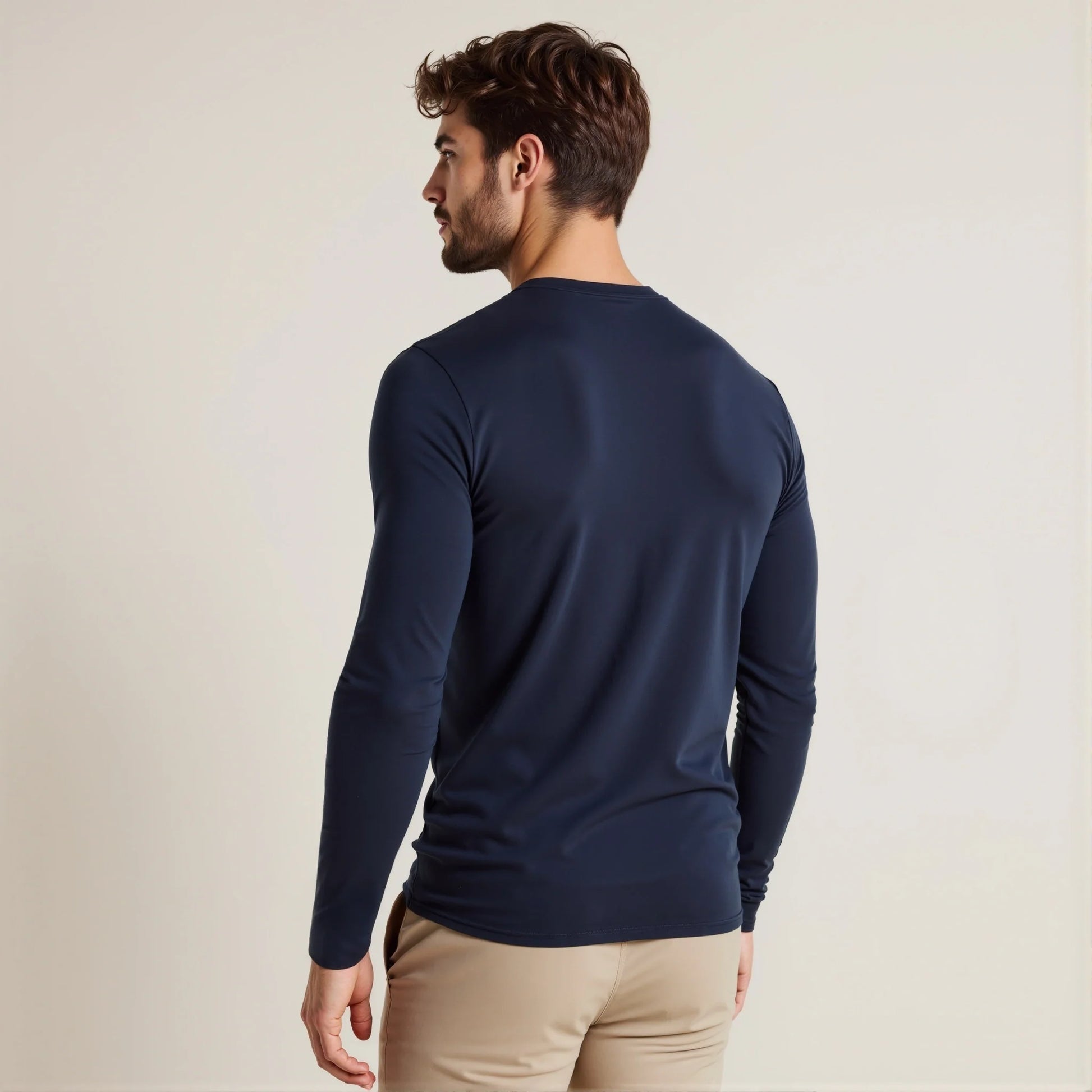 Discover the Camogli T-shirt, an elegant long-sleeve option from Altaforma Milano. With its deep dark blue color and muscle fit, this T-shirt is designed to enhance your silhouette, adapting perfectly to your figure without sacrificing comfort.